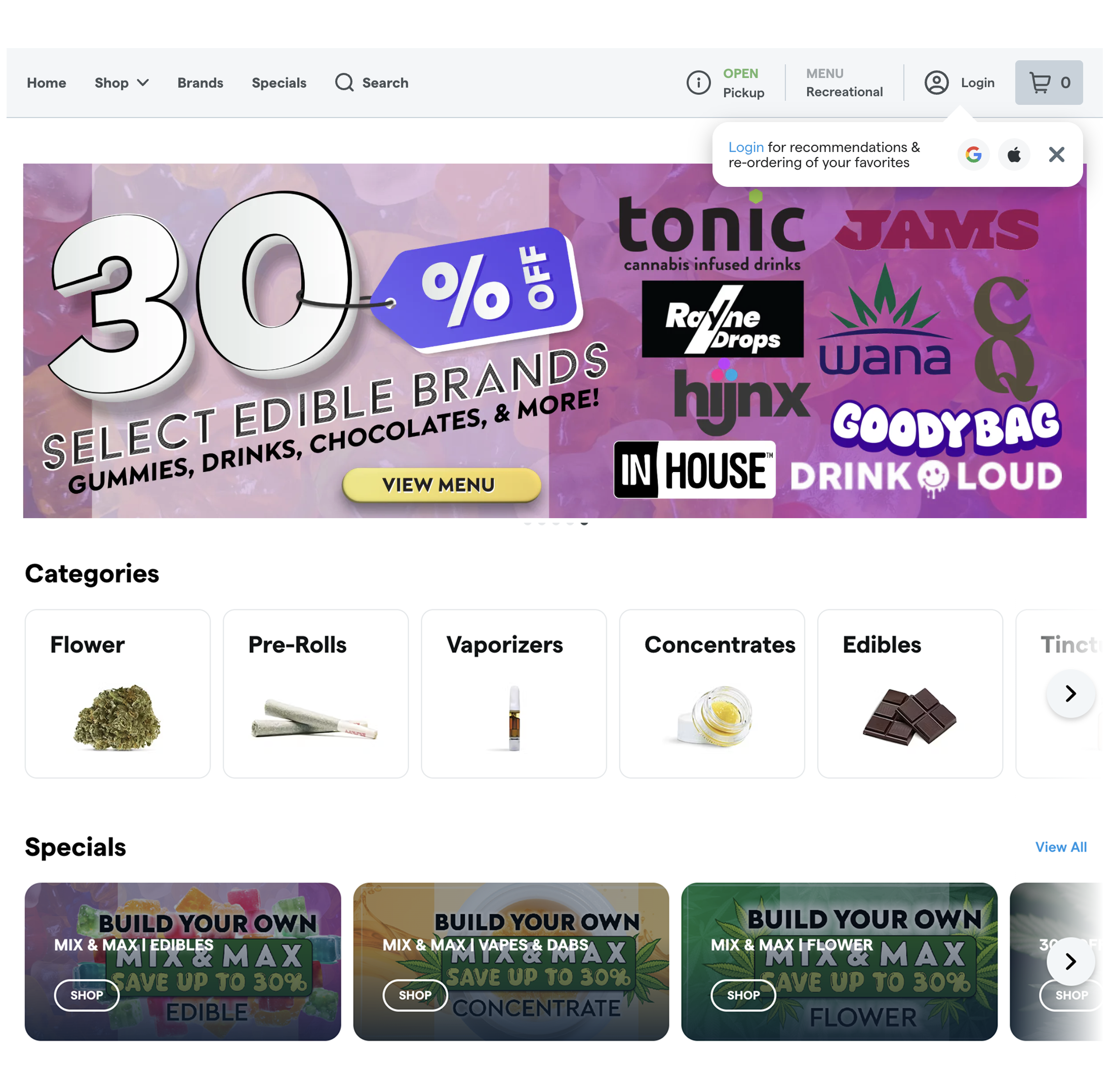 With Dutchie e-commerce, Cloud9 was able to use custom components and branding tools to refine their menu, improve discovery, and guide buying decisions. βAll in all, having our stuff pretty, and well conveyed on the menu using the banners, custom categories, and having the big red slashes through things does a lot.β