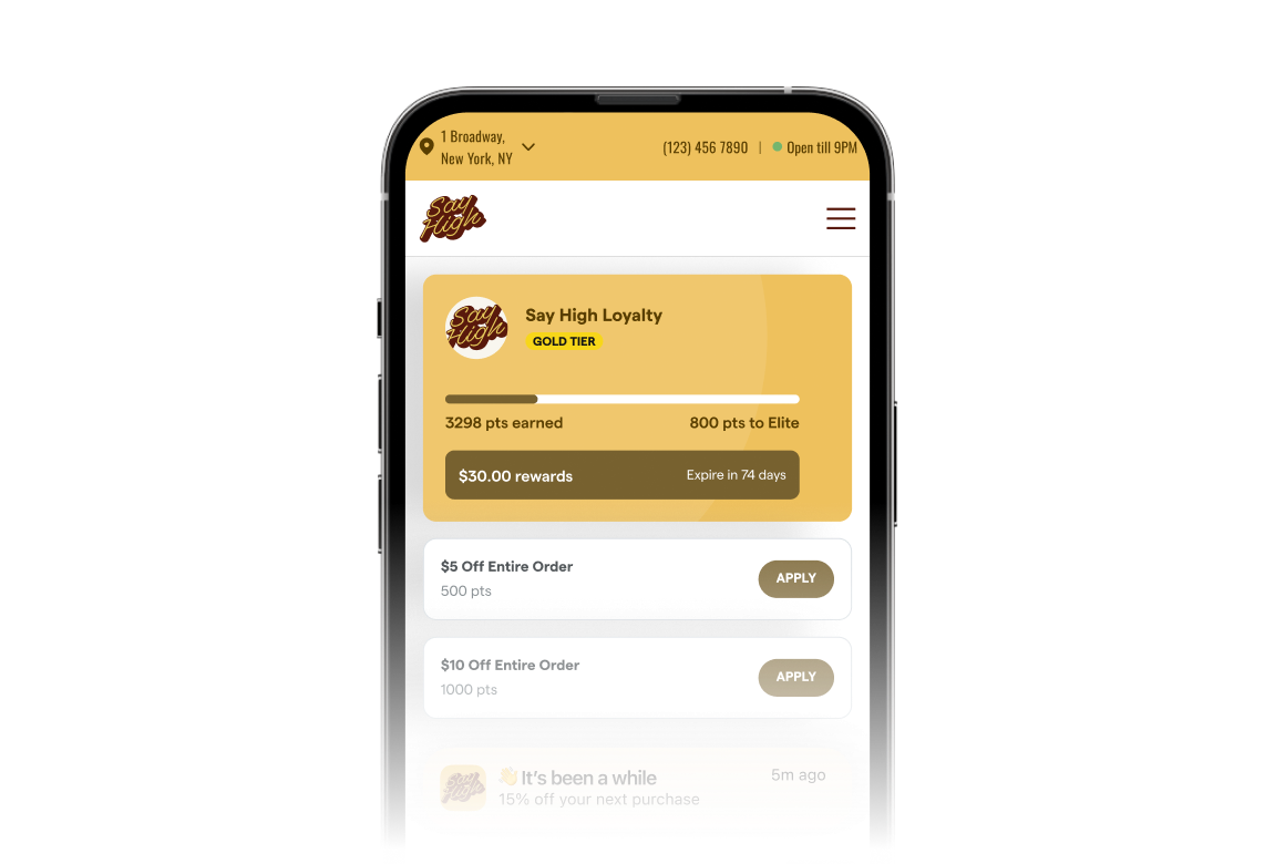 Customers can see their rewards in real time, apply them during checkout, and unlock personalized offers directly while browsing your website.