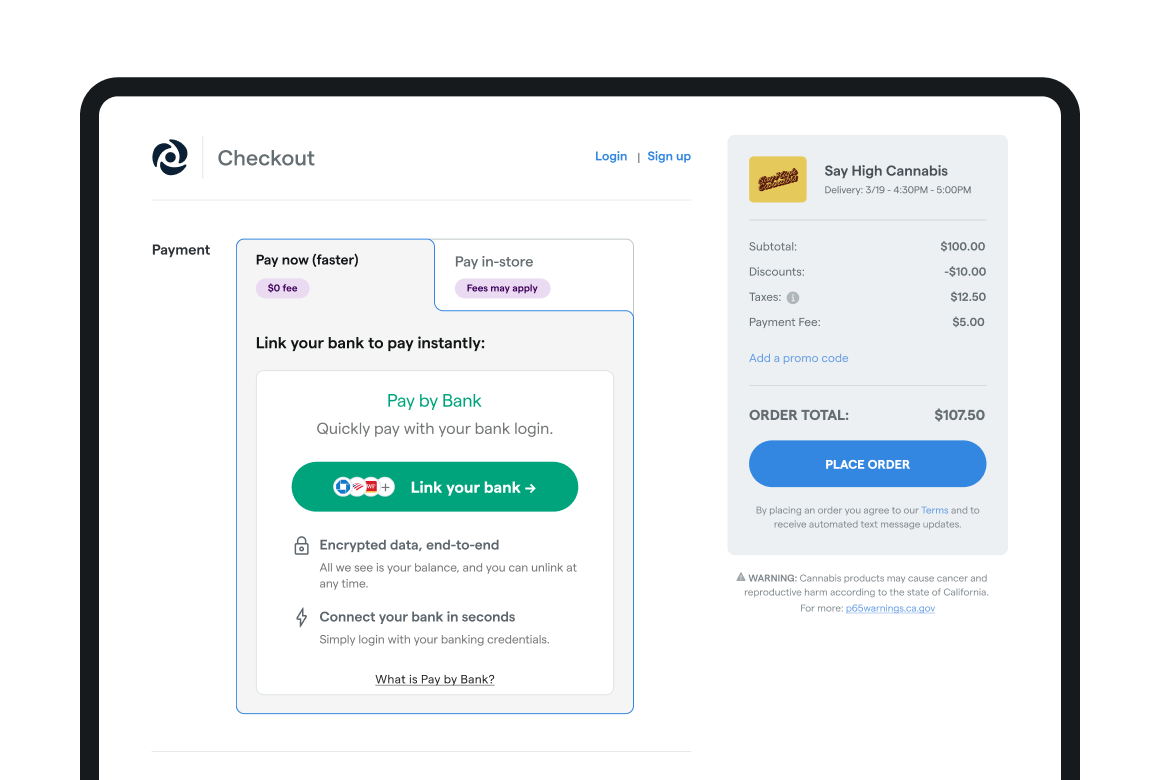 Customers save a Dutchie loyalty pass to Apple or Google Wallet. They track rewards in real time and scan to pay with Pay by Bank. It is the same smooth checkout they expect from their favorite coffee shop.