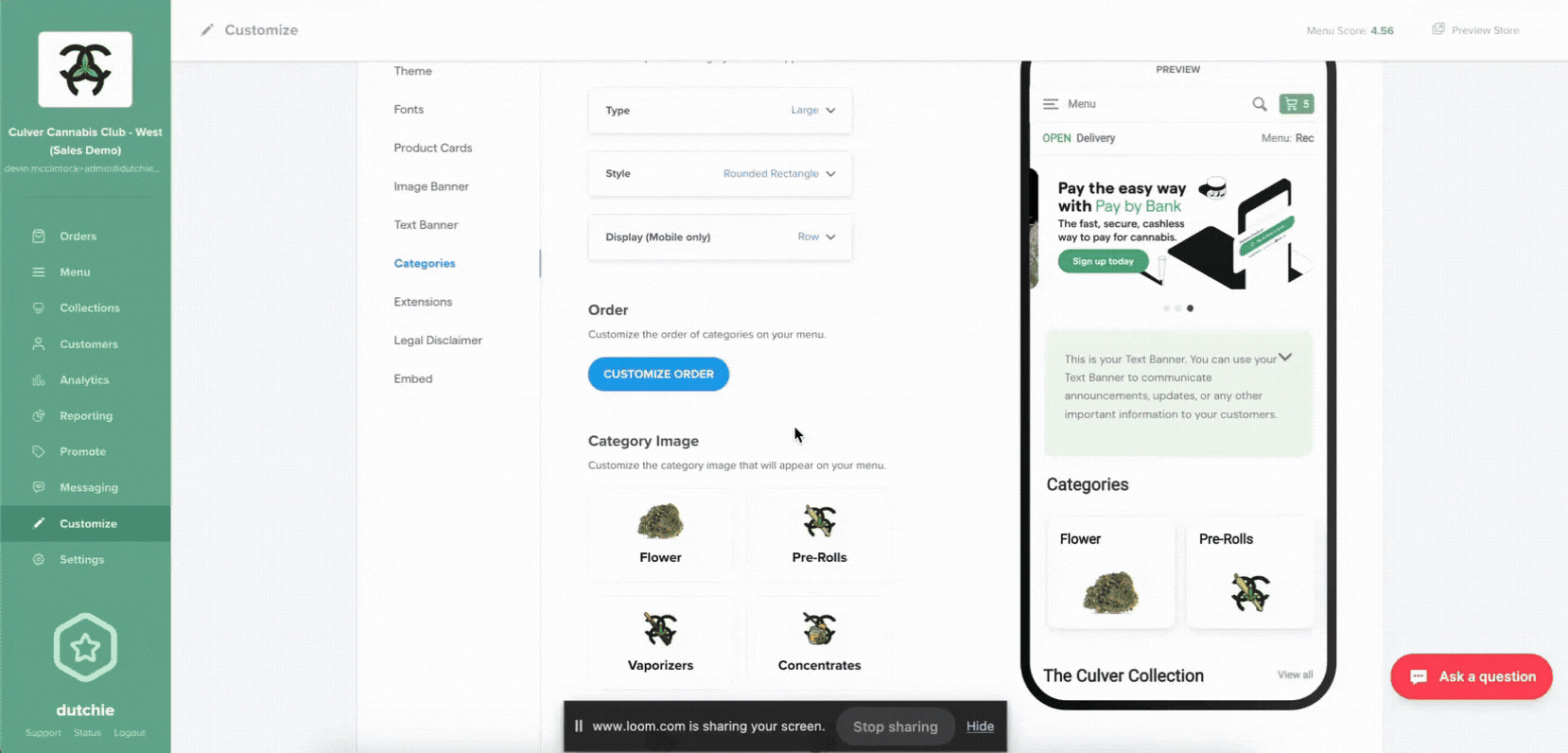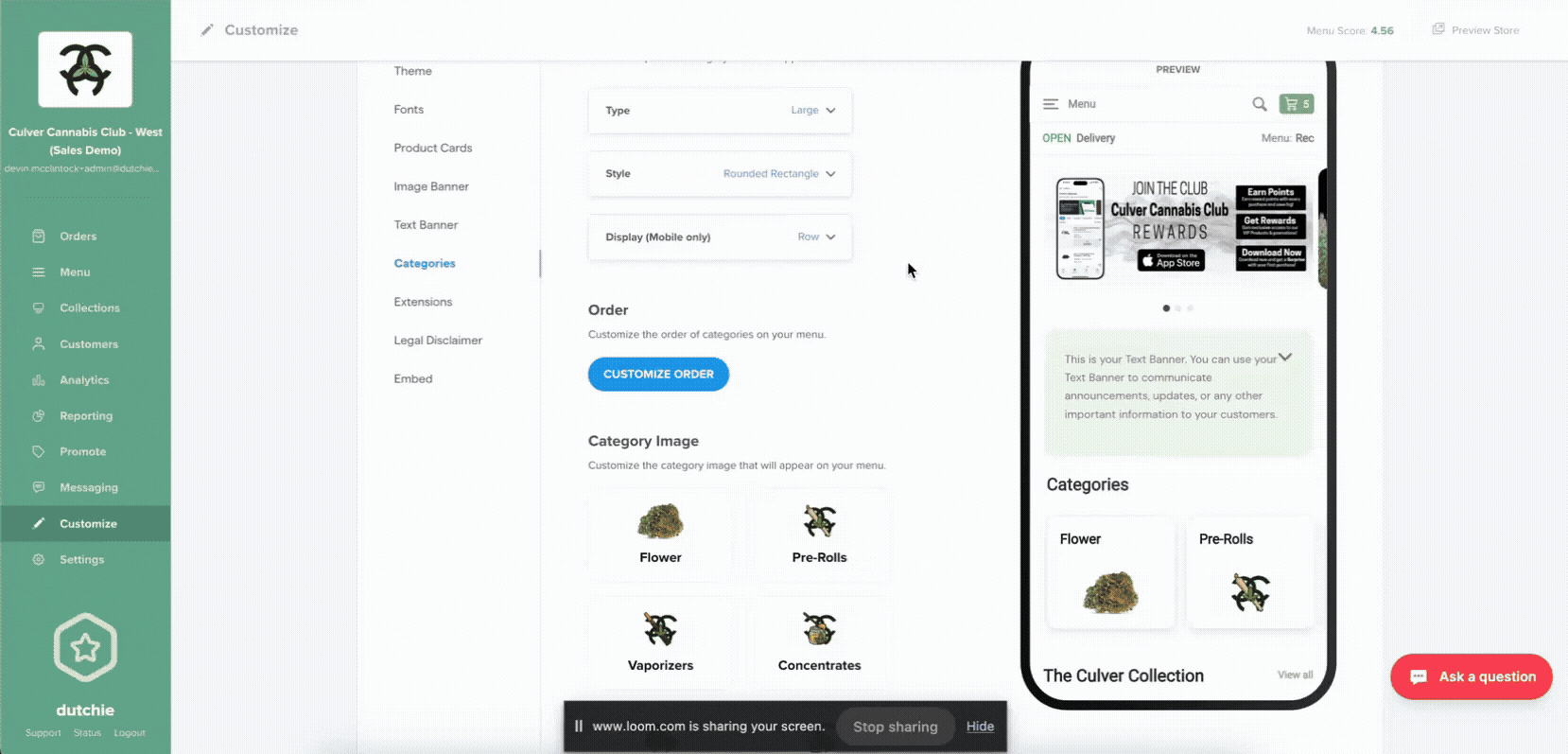 At Dutchie, we believe your E-Commerce menu should be more than just a list of products; it should be a vibrant extension of your brand. As part of the design team, Iβve seen firsthand how thoughtful customization can help dispensaries stand out. Whether your storefront gives off bold, playful energy or a sleek, modern vibe, it should immediately reflect your unique identity to every customer, every time they visit.